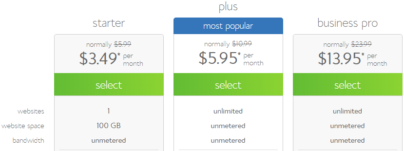 Let’s take an example of starter plan. You can buy Starter plan for $4.95 per month if you subscribe for 12 months but the same plan can be subscribed for $3.95 per month if subscribed for 24 months and $3.49 per month if subscribed for 36 months.