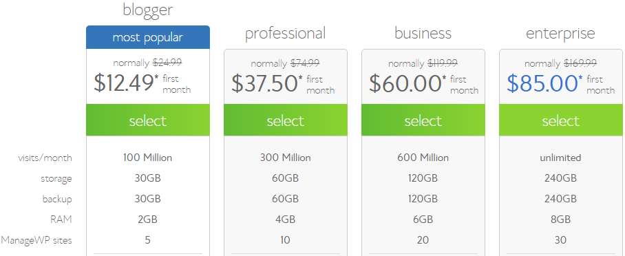 • Compare to other premium web hosting companies, Bluehost has a very competitive pricing. You can host your website or as low as $3.49 per month.